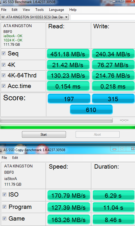But the 120GB HyperX 3K SSD - Na`Vi Edition drive was surprisingly fast in the 4K random writing tests with 76.26 MB/s: