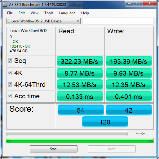 TheDD512'ss performance in sequential reading with incompressible test was nevertheless the same we previously saw - at 322 MB/s for read and 193 MB/s for write.