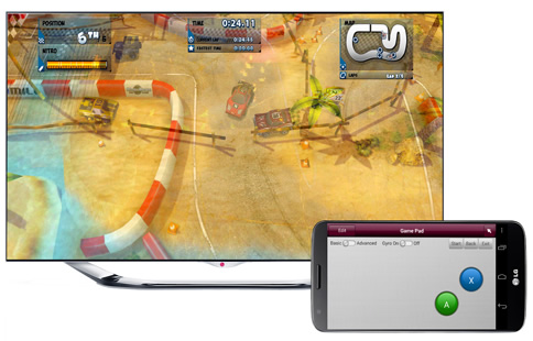LG will incorporate AllJoyn to allow multiple devices to communicate with LG Smart TVs simultaneously. Several smartphones or tablets, each running a completely different OS, can participate in the same multiplayer game on an LG Smart TV. In Mini Motor Racing, one person could steer his or her car around the track using the LG Magic Remote while the other players control their vehicles via the LG Gamepad app for mobile devices.