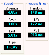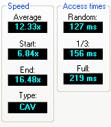 For our CD transfer rate tests, we used the Nero CD-Speed utility and a set of Pressed CDs. The drive can read CD_ROM media at a maximum speed of 40X.