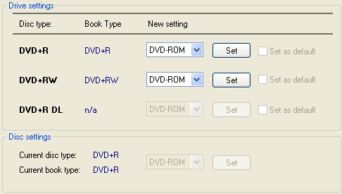 The LG GBW-H10N supports booktype setting for DVD+R and DVD+RW media only.