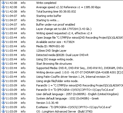 For comparison reasons, we post some burning results from other DL writers, which all burned the same content ("Gladiator Movie - Special Edition" disc1), using the CopyToDVD software: