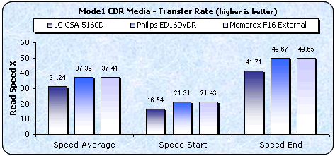 Here we can see something that we don't always see in our reviews, especially in the External Drives. Below, is a graph of the DVD-RAM reading capabilities of the LG 5160D drive.