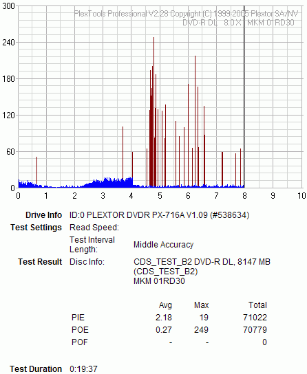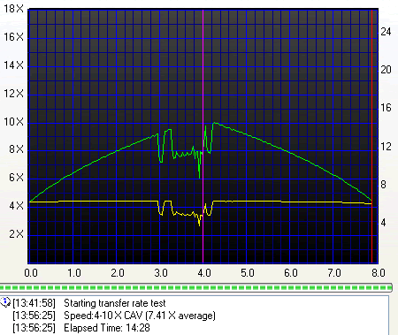 Unfortunately, the Plextor drive could not read the specific media, even though the LiteOn drive managed to read both layers with a slight drop in speed during the layer change.