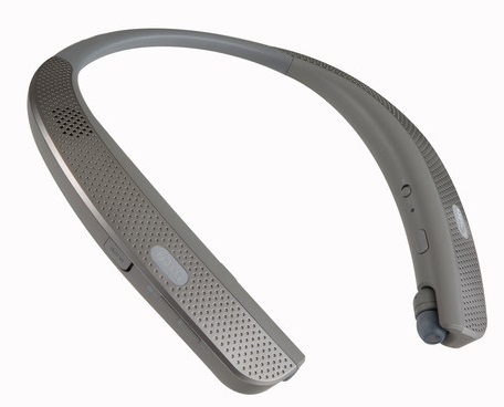The LG TONE Studio (model HBS-W120) personal wearable speaker features four speakers - two full range on the top and two vibrating on the bottom - that give a personal surround sound experience when watching a movie, playing a video game or streaming music. The LG TONE Studio features a Hi-Fi DAC (Digital to Analog Converter) that enhances sound quality. What's more is that with Dual Play, you can connect two LG TONE Studio wearable speakers and share the sound from a movie, playlist or more.