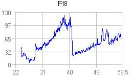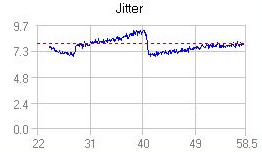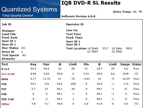 Another nice burn for the LiteOn drive, reporting no uncorrectable digital errors. Notice that the PI8 and Jitter graphs are following the same pattern, with a significant drop in both graphs at around the 40.5 mm radius of the disc. PI8 stayed well below the 280 limit, while jitter reached the 9.5 at the same position.