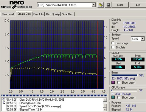 The drive burned and read the 5x DVD-RAM disc with no problems.