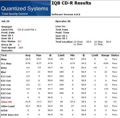 Generally a nice burn here with only the jitter measured for the pits to be over the limits . No uncorrectable errors (E32) were reported.