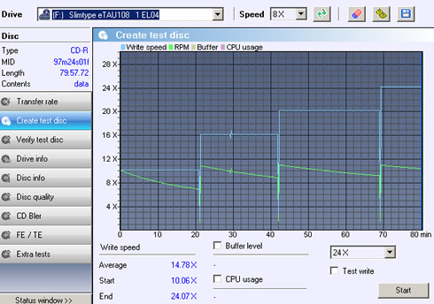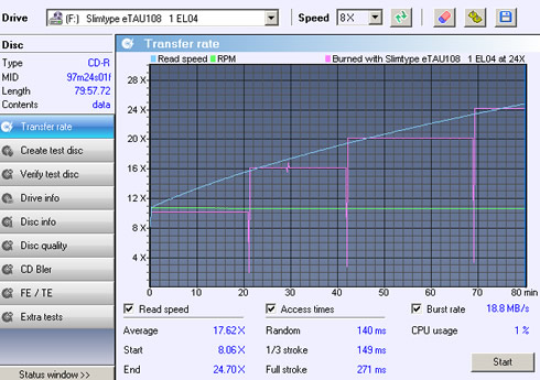 8. CD-RW burning - Verbatim CD-RW @ 24x