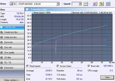 9. CD-RW burning - Verbatim CD-RW 24x @ 24x, verbatim 32x CD-RW @ 32x