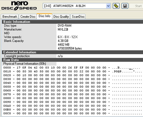 The LiteOn iHAS524 DVD burner had not any reading/writing problems with both the Maxell DVD-RAM discs of this test (@5x and @12x)