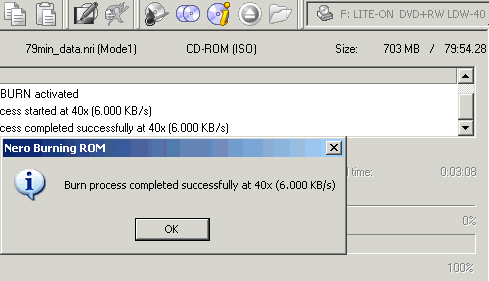 The following picture comes from Nero after a successful burning at the maximum 40x speed: