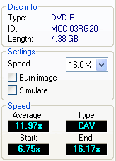Above, we also have a successful burn at 16x CAV, with an average speed of 11.97x.