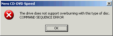 Unfortunately, the drive does not support DVD overburning with either -R or +R media formats, giving the above error messages.