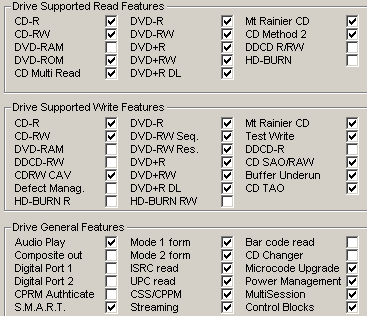 Below are the drive's main specs as given by NeroInfoTool, VSO Inspector and DVDInfoPro: