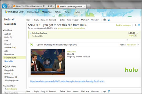 Active Views were introduced to Hotmail last year to allow links to Flickr, YouTube, and Hulu to be viewed without ever having to leave your inbox.