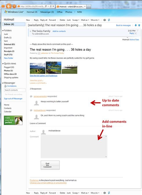 Posterous is also enabling inline commenting directly from an email, and the message is updated when users open it to always show the latest comments.