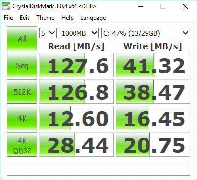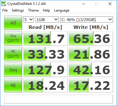 The Minix Neo Z83-4 comes with a Samsung 32GB eMMC 5.0 storage device. Our tests showed an overall acceptable performance, slightly higher than what we would get if the system used a traditional HDD, but much lower a typical SSD: