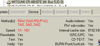tested the Mitsumi CR-4808TE with Nero v5.5.3.5, CloneCD v3.0.5.1 and Padus