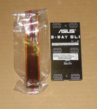 Not much to say here, inside the box you will find the usual cables and of course, the 3-way SLI bridge connector.