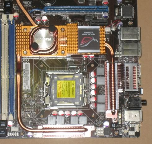 Besides the typical Mosfet and copper heatpipe complex around the CPU area, we should remind you that the the Asus Striker II Extreme can use a water cooled system. This would seriously keep these heatpipes cool under overclocking.