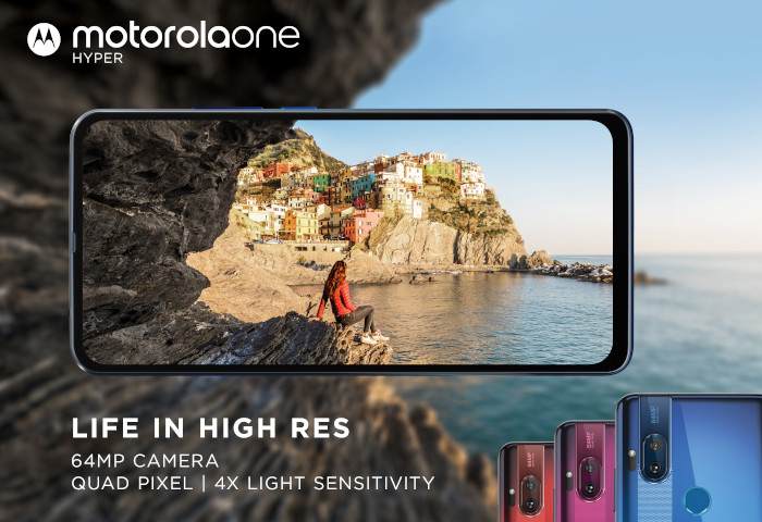 Motorola unveiled the motorola one hyper, a new smartphone with an advanced camera system; an ultra-high resolution 64-megapixel main camera and 32-megapixel pop-up selfie cam; a 6.5″ Full HD+ edge to edge display; and a powerful charging system.