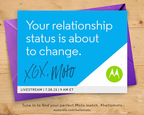 Motorola has a new device up its sleeve and is set to announce in a global event on July 28th. There?s no further information on the type of device or software it will reveal, and the only text on the invite reads "Your relationship status is about to change." Meanwhile, Motorola's official announcement page says this about our relationships with our smartphones: