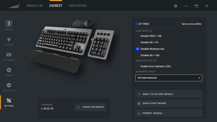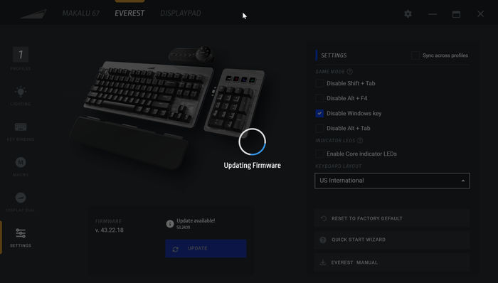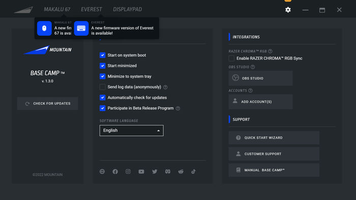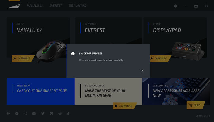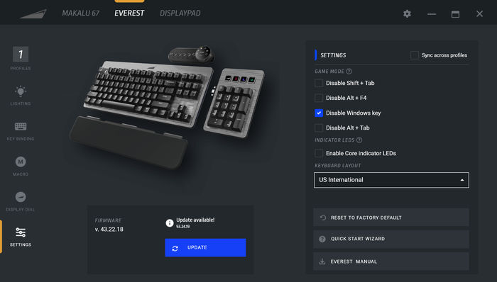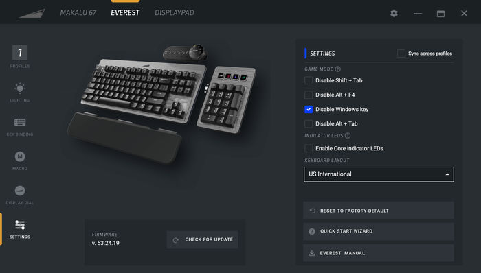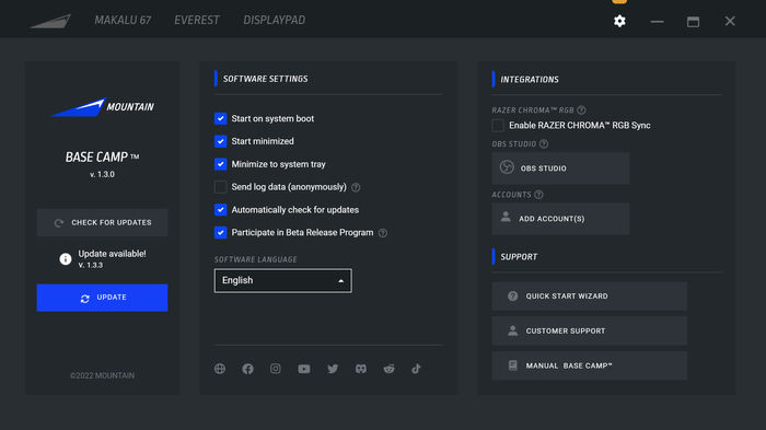 Users before using both EVEREST MAX keyboard and Makalu 67 mouse should install the latest build (1.3.3) of the MOUNTAIN Base Camp software. The software for now is only available for Windows 10 & 11 operating systems. Hopefully, MOUNTAIN will also port the software to MAC OS and Linux to further expand their user base.