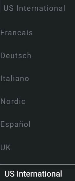 as well as the keyboard layout from 7 different languages (Francais, Deutch, Italiano, Nordic, Espanol, UK and US International), default is US international.
