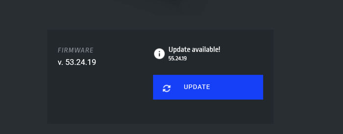 Our product came with 43.22.18 firmware and already a newer 53.24.19 update was available that didn't took too long to get installed.