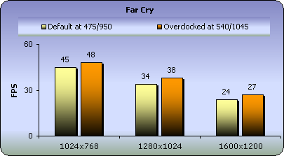 The MSI FX5950 Ultra edition isn't much of an overclocker. It's not that we didn't get the clocks to run much faster, but the difference we got in Doom 3 and Far Cry benchmarks was not so great. Using RivaTuner, we pushed the core speed from 475MHz to 540MHz and the memory clock from 950MHz to 1.04GHz. Let's see the results: