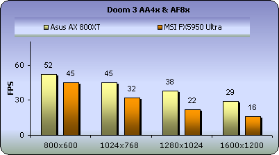 In this test, the framerate is limited by CPU power. But a P4 running at 2.8GHz is much faster than the CPU of the average game player so you can rest assured that the FX5950U gives you more than you need.