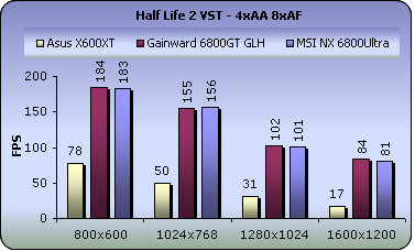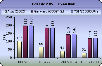 Even enabling 4x Anti-Aliasing and 8x Anisotropic Filtering can't bring this card's performance down at all. As long as your CPU can handle the Source Engine that is working at the backend of Half Life 2, the MSI NX 6800 Ultra can ensure you have the highest framerate possible currently.
