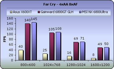 Once again, the NX 6800 Ultra leads the race by 4-5 fps under all resolutions.