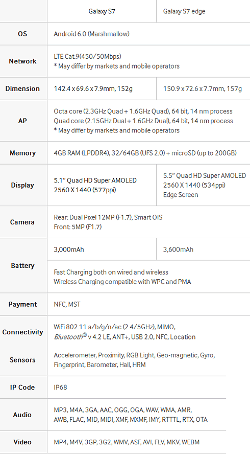 The new smartphones also deliver fast wired and wireless charging technology. Powered by 3000mAh and 3600mAh batteries, respecytively, the S7 and S7 Edge allow you to watch the whole season of "Game of Thrones" with single charge, according to Samsung.