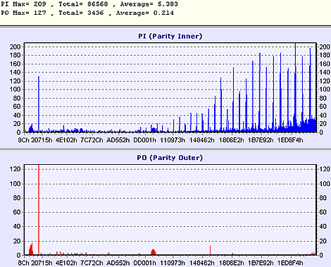 Mitshubishi Chemicals 4x DVD+RW and JVC 4x DVD-RW media were the worst performers with excessive totals and average counts for both PI and PO.