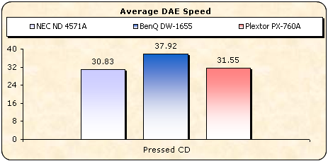 For these tests we used a pressed AudioCD and the Advanced DAE CDSpeed feature.