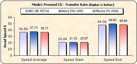 All three drives support up to 16X reading speed with Pressed SL media, hence the speed differences can be considered as negligible.