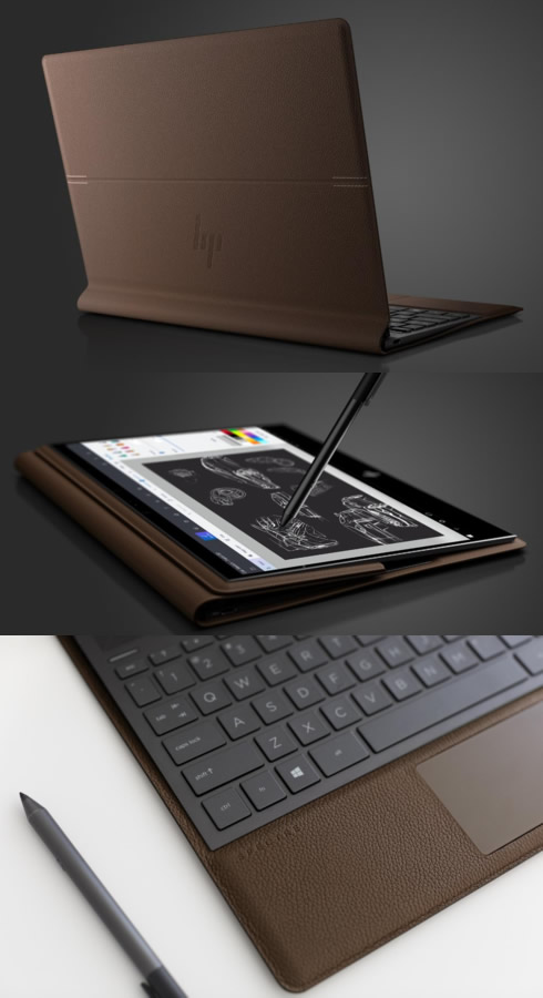The first leather convertible PC, the Spectre Folio blends craftsmanship with the latest technology. It has a 100 percent chromed tan, made of full-grain leather. It is a durable material that provides a natural hinge and flexible chassis. The Spectre Folio will be available in two colors: Cognac Brown and Bordeaux Burgundy.