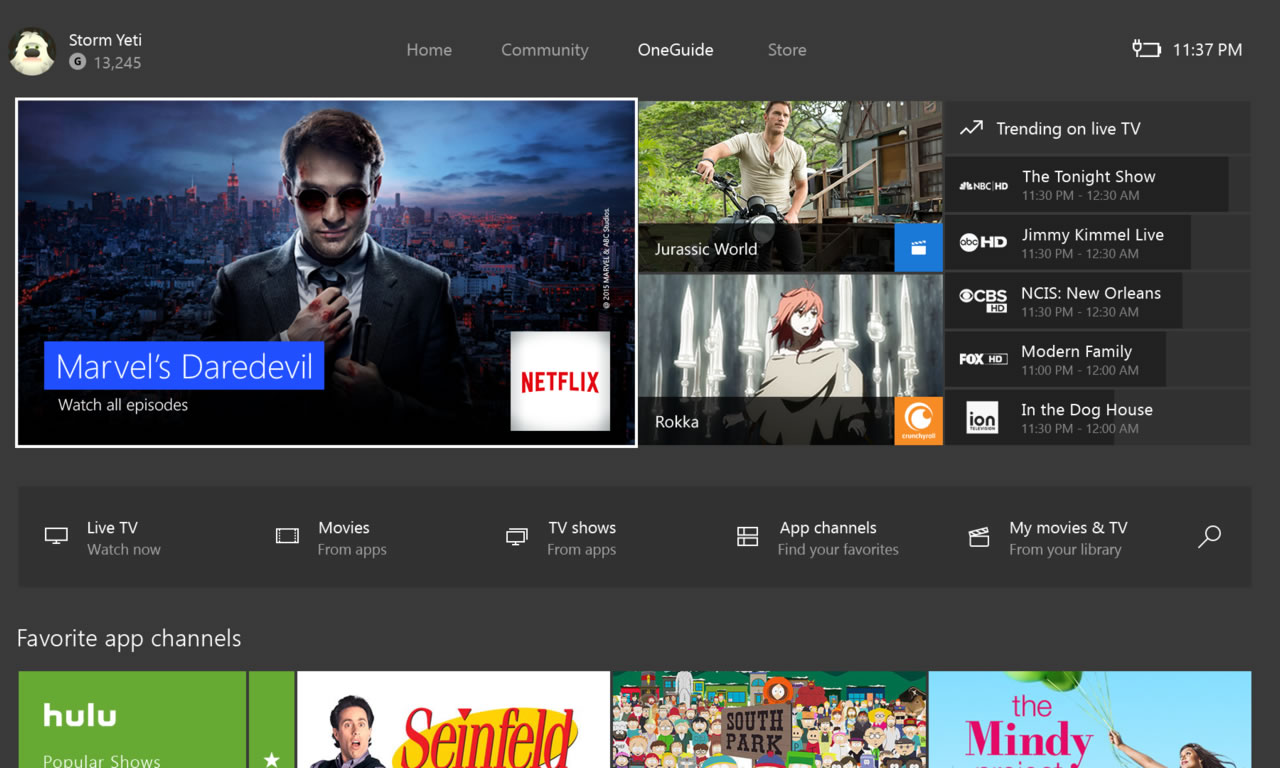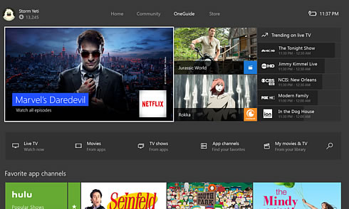 - The revamped OneGuide is your destination for TV, movies and video. You can find new movies, TV shows and videos from across apps on Xbox One. App channels help you discover what’s new in your favorite apps. TV listings are viewable instantly in OneGuide – including listings from over-the-air channels and, coming soon, Sling TV. Picture-in-picture allows you to keep browsing for other things to watch without missing what’s happening on live TV.