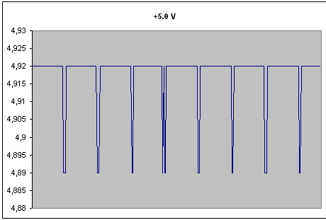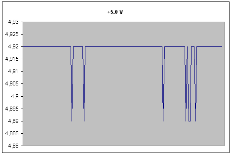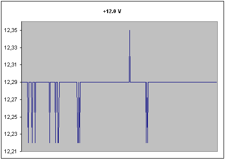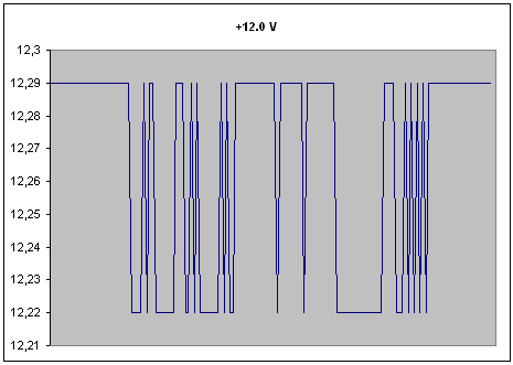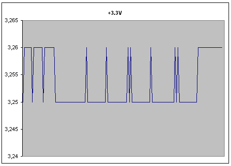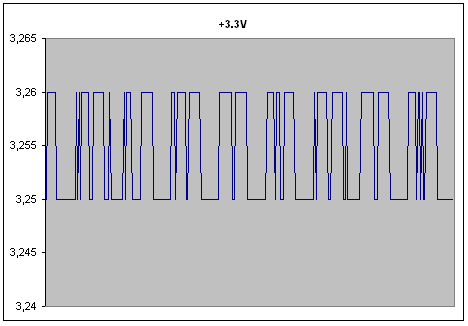 After running 3D Mark 06, the monitored outputs showed the deviation experienced by each rail during the stress tests:
