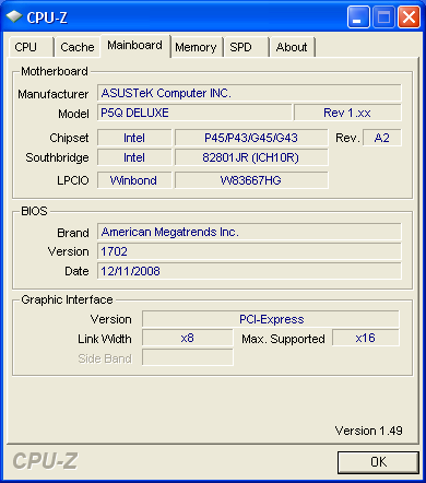 - Motherboard: Asus P5Q Deluxe Bios 1704