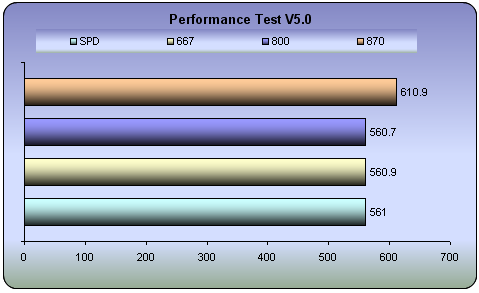 There is huge gain when the RAM is overclocked. When not overclocking, the performance as reported by Passmark, is the same no matter whether the memory is running at 667MHz or 800MHz.