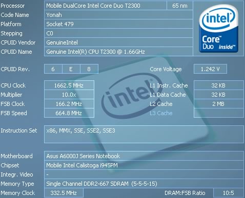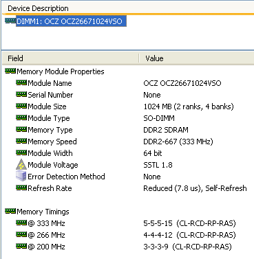 The OCZ PC2-5400 memory kit was mainly tested with an ASUS A6JA. There were no in-compatibility issues, either alone or combined with the stock 1GB DDR-533 memory. All tests performed under the same enviroment, using the same benchmark utilities. After installing the memory module, we checked its preferences with the latest available version of Everest Ultimate Edition 2006. The memory runs at 333Mhz with 5-5-5-15 cache latency.