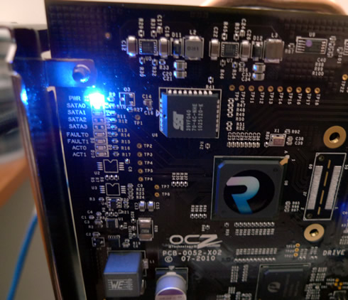 The RevoDrive uses two SandForce SF-1200 controllers in RAID-0 on a PCIe x4 card.