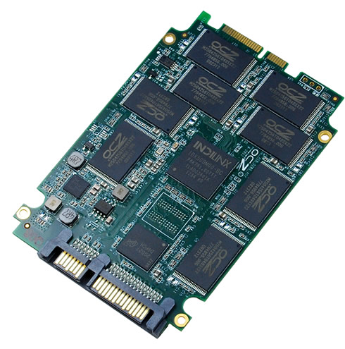 Below you see eight 25nm IMFT synchronous 2-bit-per-cell MLC NAND positioned on the PCB, along with the new Indilinx BareFoot 3 SSD controller, DDR3 cache memory, and various support components.