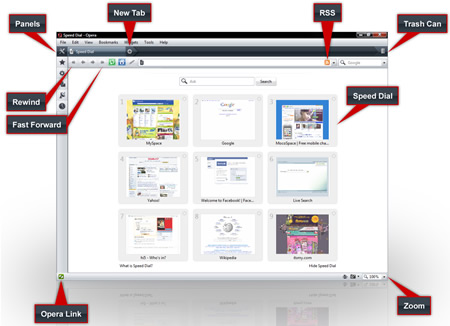Looking sharp: Opera makes a move to modernize its look and feel to a sharp new skin with clean lines and clear icons. The 'New Tab' button and other elements have been modified to make the switch to a better Web experience more intuitive. You may also select any of our platform-specific skins to help Opera's appearance adapt to your operating system of choice.