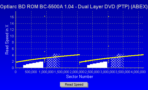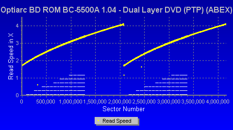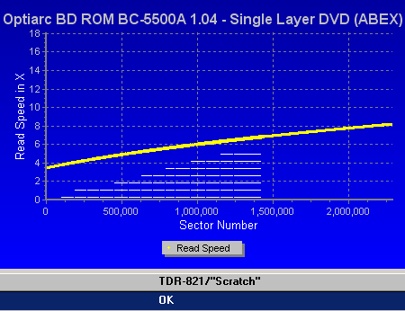 A perfectly smooth benchmark with the artificially scratched, single layered DVD-ROM of ABEX.