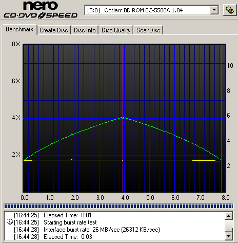 Perfectly smooth benchmark once again. The Optiarc drive responds very well with the artificially defected test discs.