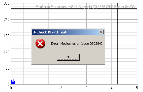 In this case, Kprobe reported servo error at the end of the disc. We tried twice to burn the media but both times the same message was produced. Both recorded media were brand new.